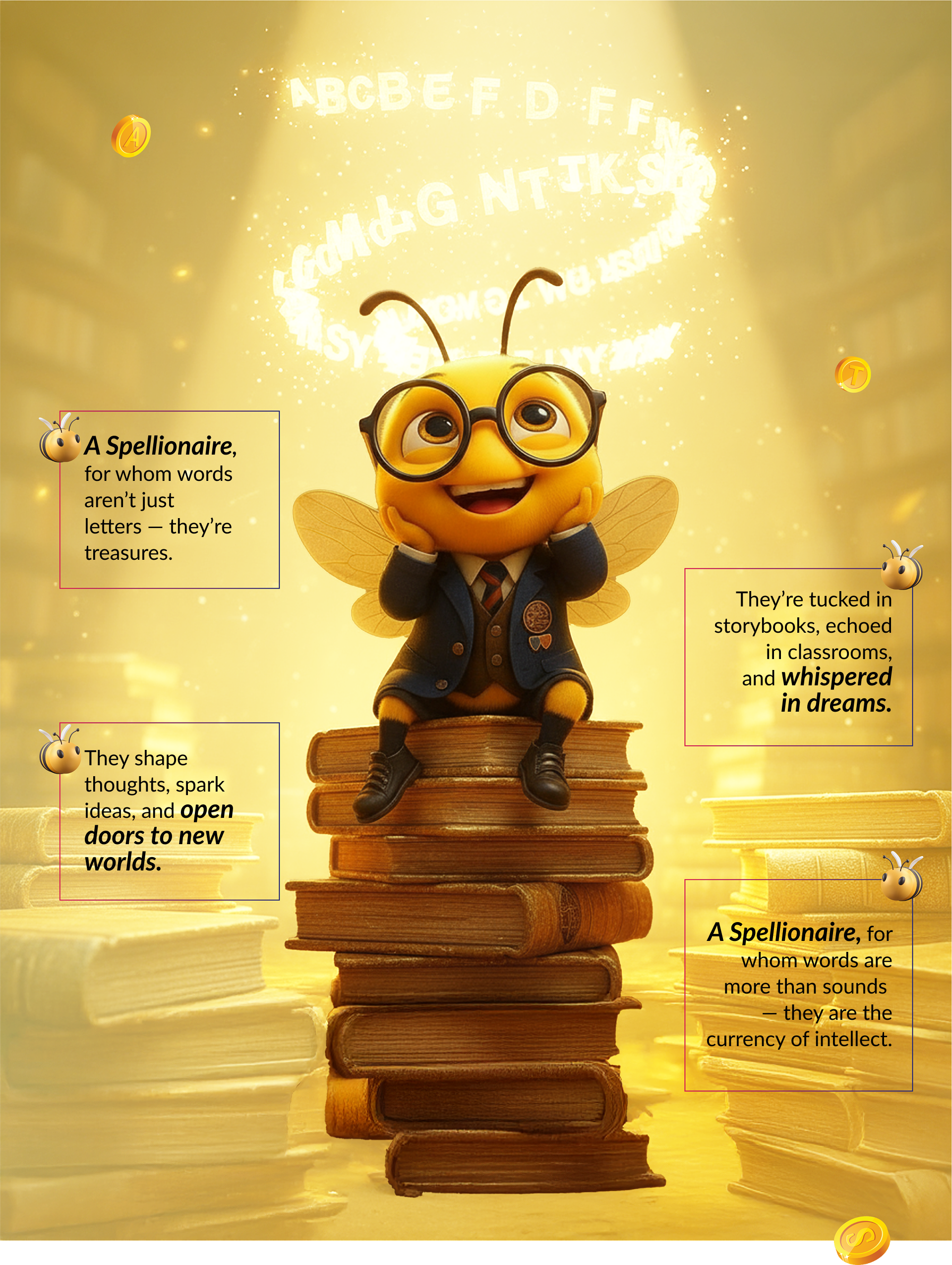 This Spell Bee Season 15 takes you into a world made of words — where spellings build fortunes of knowledge, and every child competes to grow wealthier in learning. Here, becoming a Spellionaire means collecting treasures of wisdom.